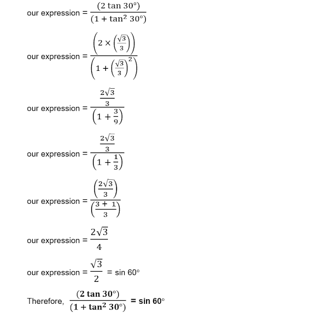 a) tan 60° = √3 --------- equation 3b) tan 30° = √3/3 --------- equation 4